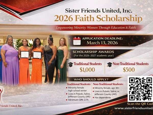 Since 2008, Sister Friends United, Inc. has invested over $50,000 in scholarships, helping women rise into purpose and create generational change. Through our Faith Scholarship, we award two annual scholarships to traditional and nontraditional minority female students. More than financial support, this scholarship is an investment in faith, potential, and empowered futures.